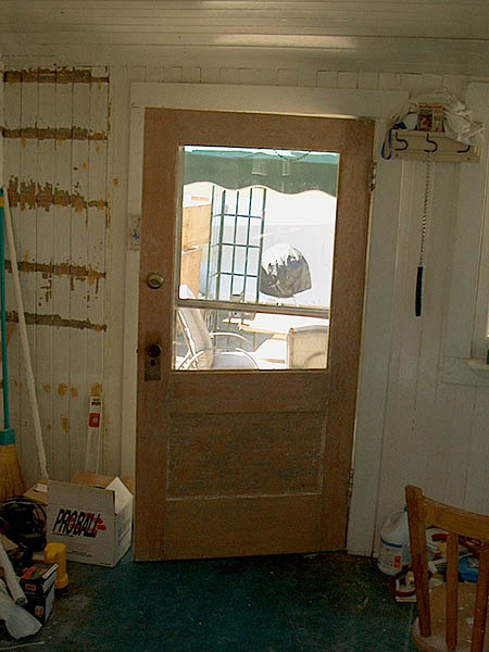 The kitchen didn't change much visibly on Saturday as the day was devoted mostly to the second coat of drywall compound, sanding the drywall compound and the trim wood (window and door casings). We also stripped the back door naked! Only one picture for this weekend.